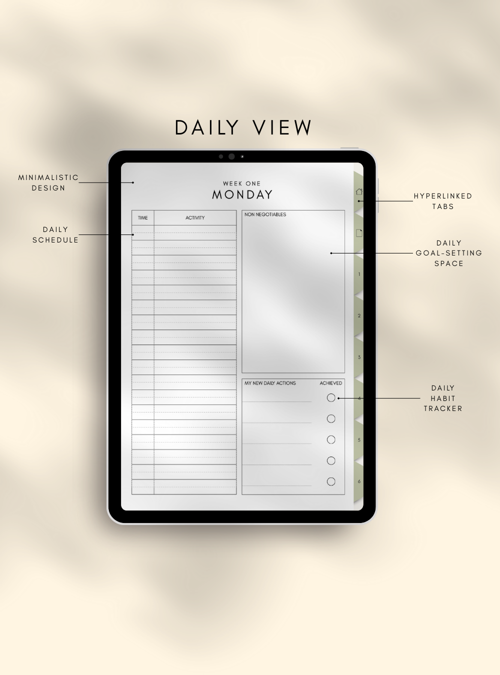With 99 pages, this planner combines goal-setting, habit tracking, and self-reflection into one simple tool.